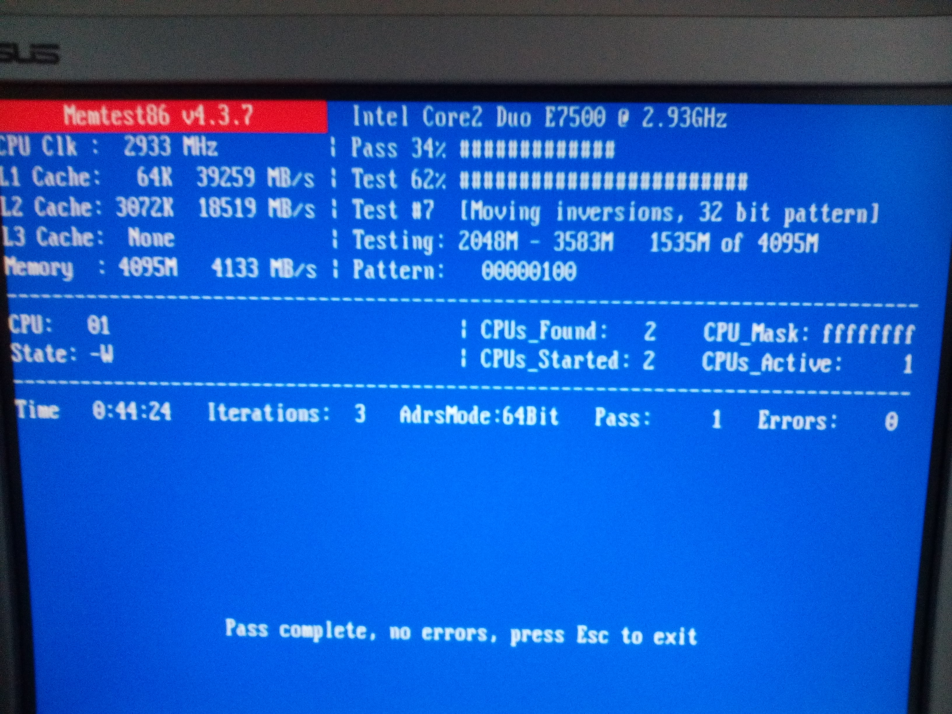 Test RAM jsem dělal přes windowsácký nástroj a byl bez chyby...