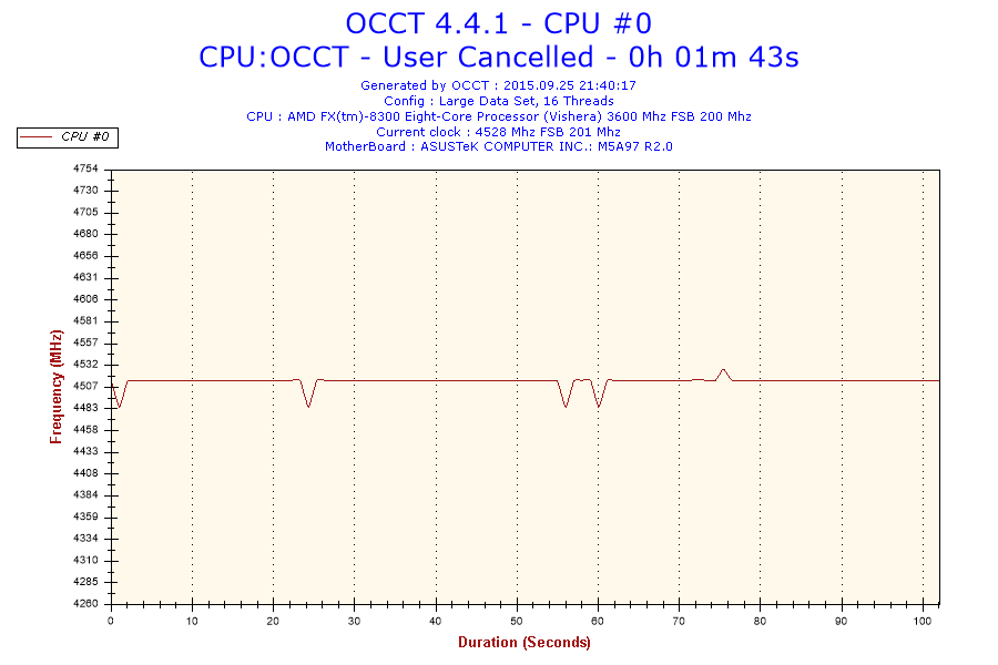 Jenže po půl hodine se hra sekne, tak jsem dal většinu napěti na auto kromě CPU a RAM, dal jsem násobič na 22,5 (4,5Ghz) při 1.33V ( podle někrých článku by to mělo být stabilní ) bus frekvence je na 200. Udělal jsem test v OCCT a teplota jela nahoru jak blázen, tak bežel jen minutu, ale skáče mi to na 4528 a bus je tak ukázaný na 201. Proč ?