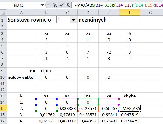 V Excelu řeším soustavu rovnic a mám mít možnost vybrat si z ComboBoxu buňky pro 3 až 8 proměnných. Potřebuji, aby mi to při výběru např. 4 zobrazilo 4 buňky pro zadání dat atp. pro ostatní proměnné. Problém je v tom, že při výpočtu se používají proměnné z předchozího výpočtu proměnné a pokud to dělám přes mazání buněk (nebo skrytí), tak to hodí chybu, protože to počítá i s buňkami, které se výběrem počtu buněk vymažou.