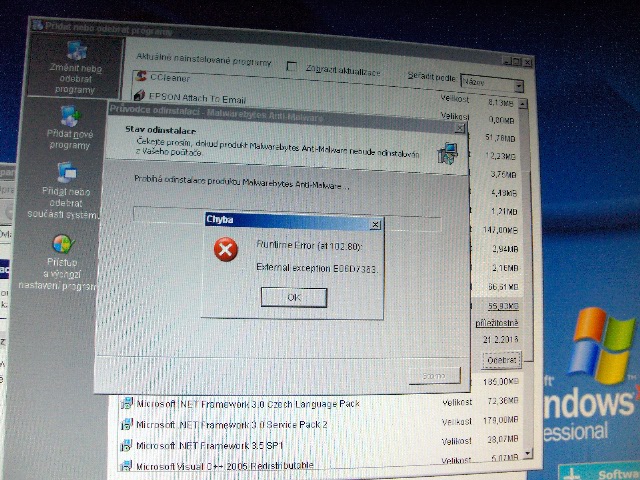Tak ani to se nezdařilo, při instalaci mi to napíše toto. Zástupce se na plochu vytvořil ale po kliknutí na ikonu se program neotevře, pouze to píše další hlášky. A odinstalovat se to také nedaří, píše viz. foto. Také se tam stále objevuje okno, vyžadující tel. připojení ( to nesouvisí s touto instalací, to je tam od začátku)