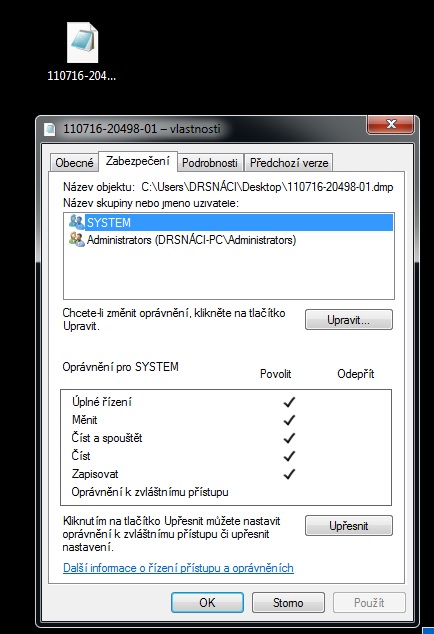 snažím se vytvořit téma s BSOD, avšak nejde mi soubor minidumb uploadnout, četl jsem kroky pro přivlastnění práv pro soubor, ale i tak mi to nejde.