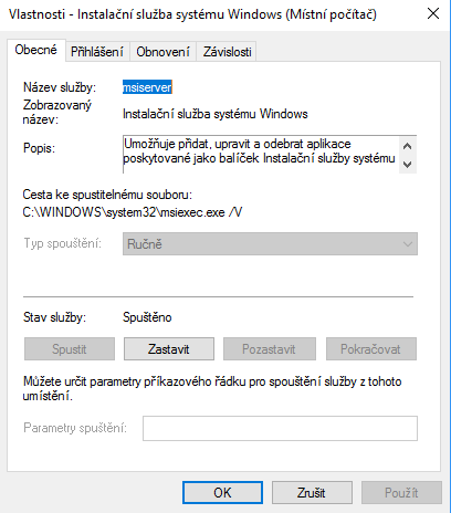 Start -> Služby > Instalační služba systému Windows -> Spustit
