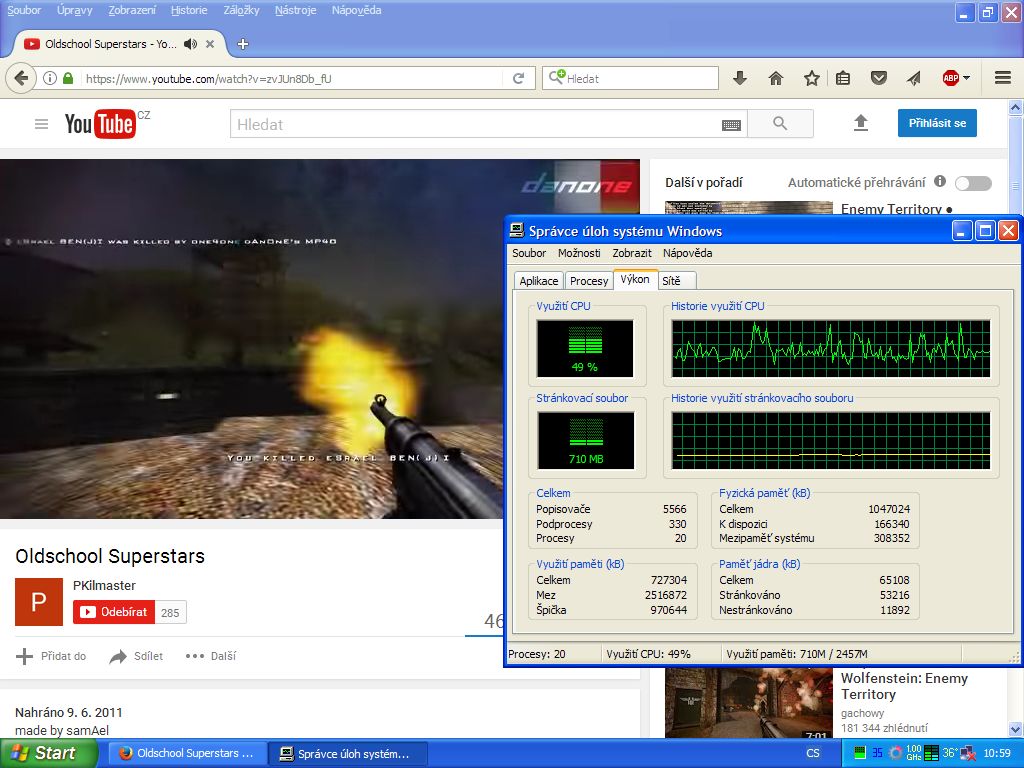 Tohle ti mame verit? Na tom pocitaci to vytuhne ve chvili, kdy otevres Youtube. Natoz aby ses dostal k tomu, abys prehral video.