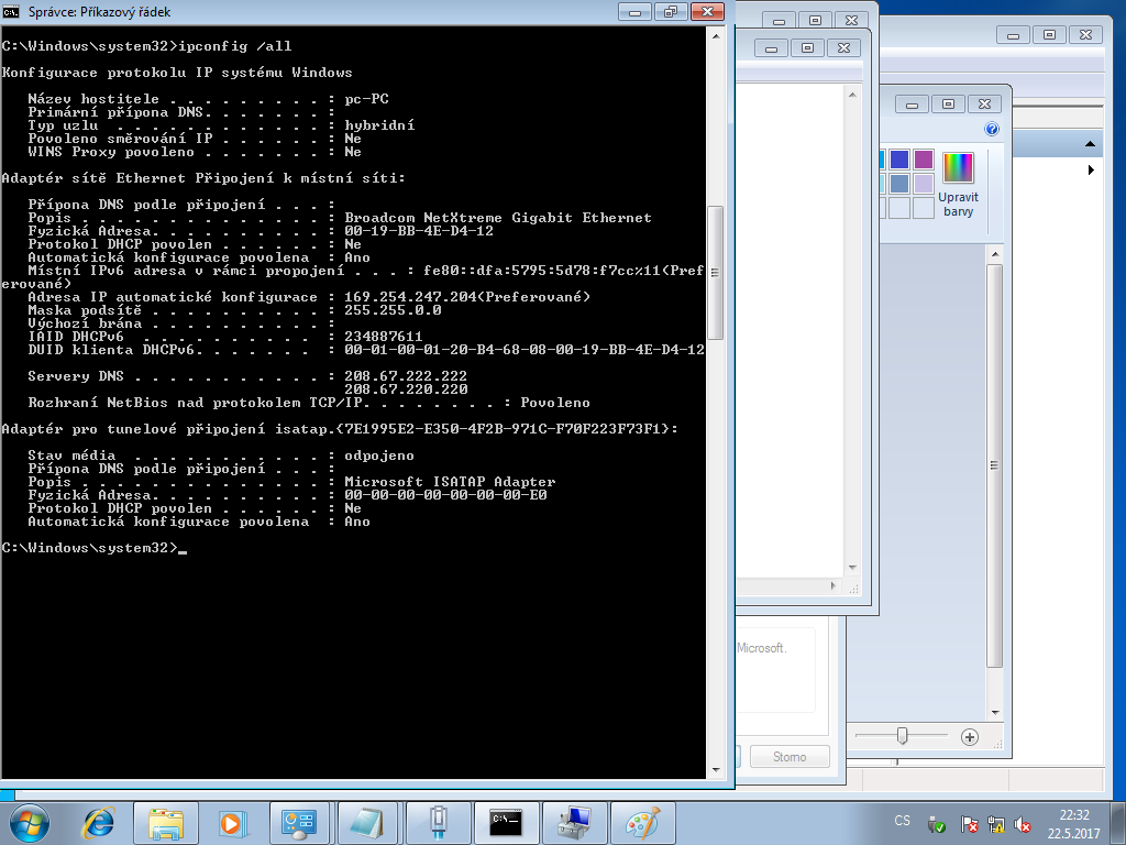 Obrazek 2 - IP adresa nebyla prirazena routerem (169.x), ma byt 10.0.0.x.