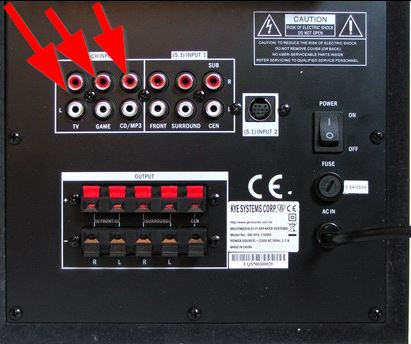 Coz znamena stereo vystup z pocitace na stereo vstup na subwooferu - TV, GAME nebo CD/MP3 a nasledne vybrat odpovidajici vstup.