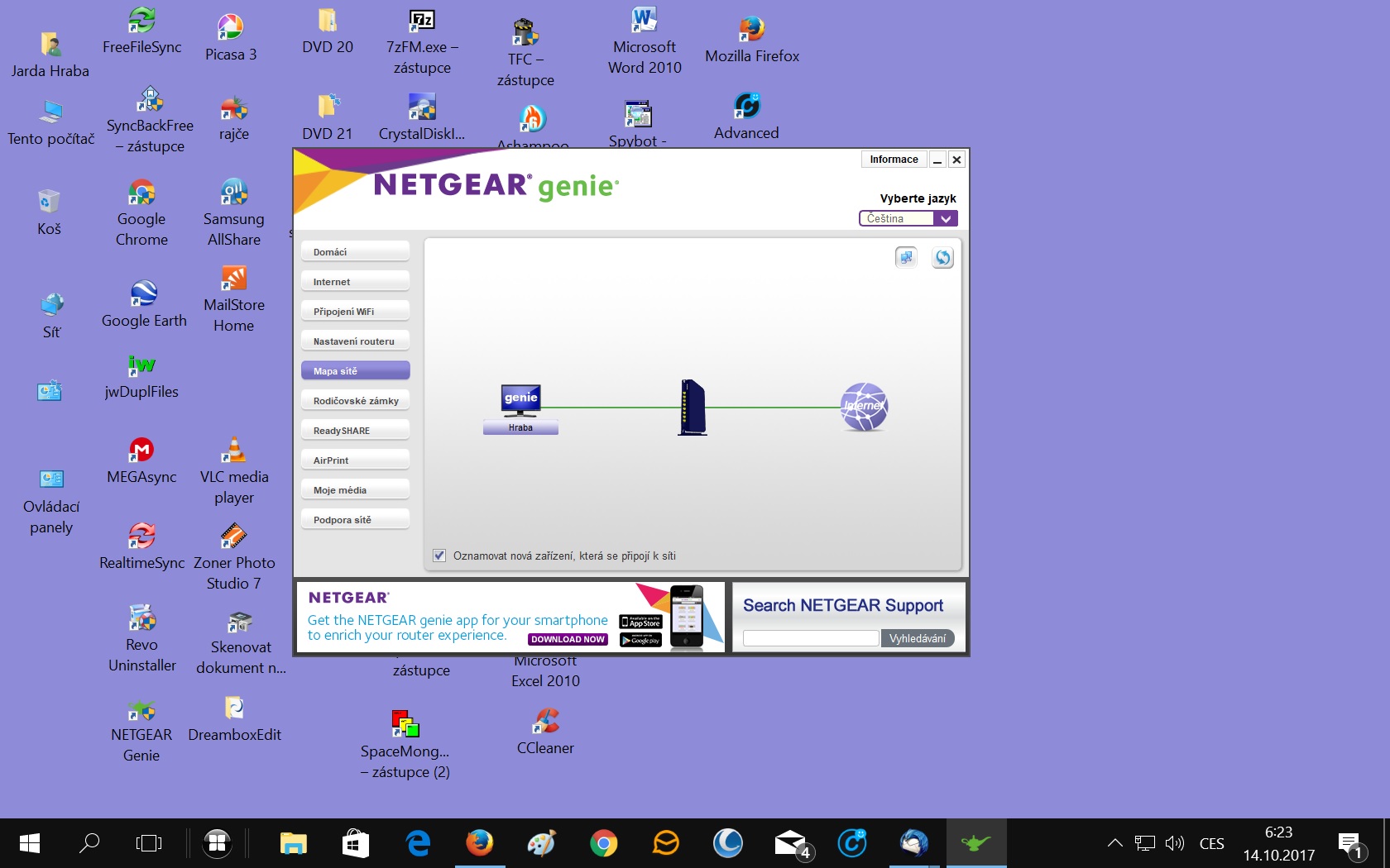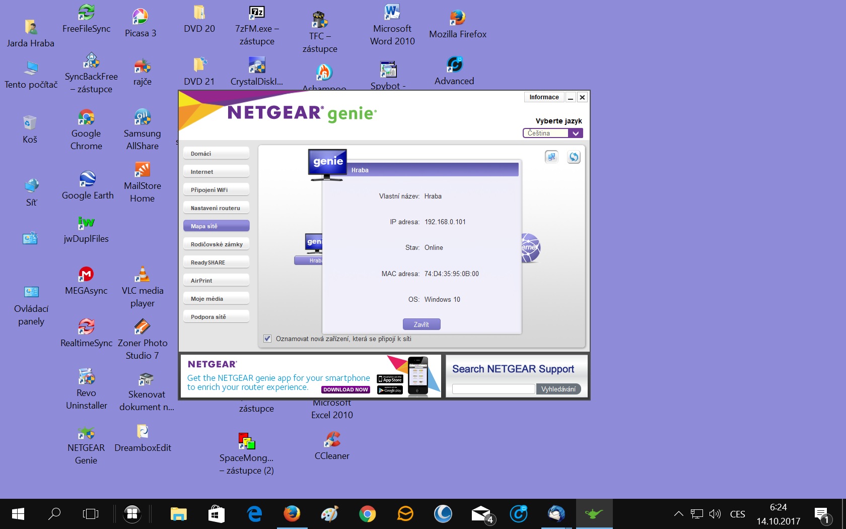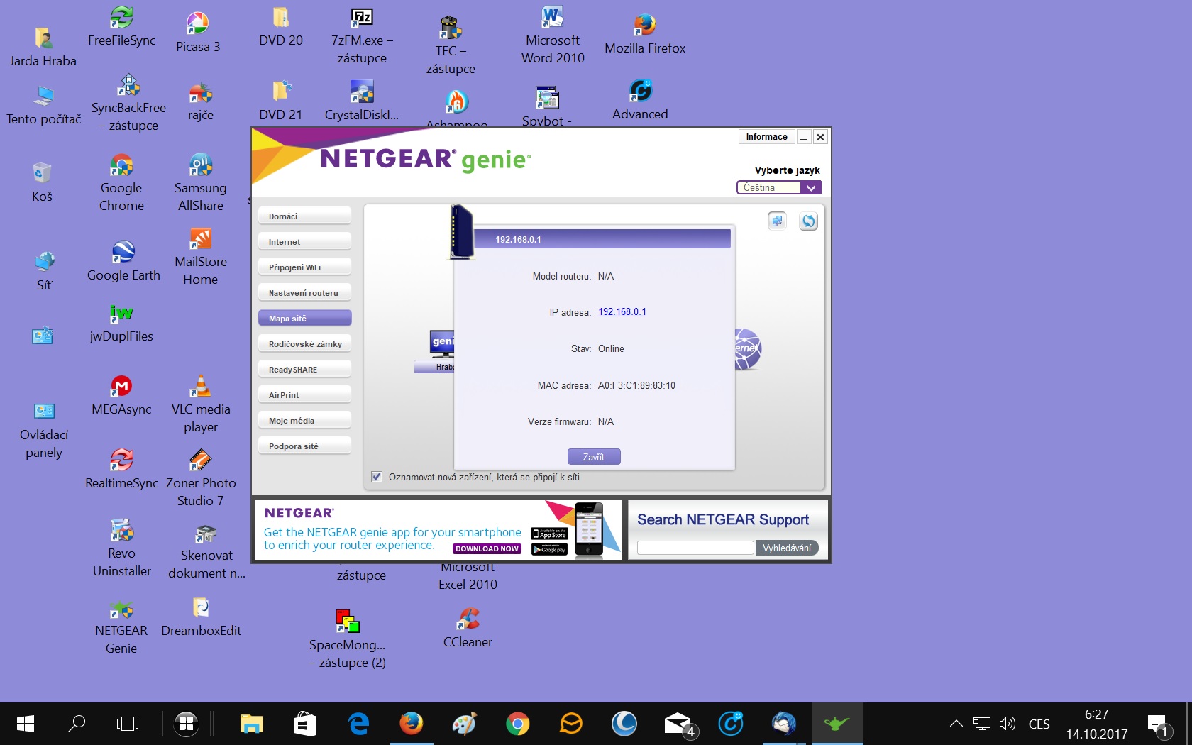 Ten Netgear genie - verze 2.4.26 jsem si stáhnul z internetu - viz : http://netgear-genie.en.lo4d.com/ - takže si myslím, že nemůže mít žádné číslo jako klasický routr, který jsem si koupil a je připojen k PC.