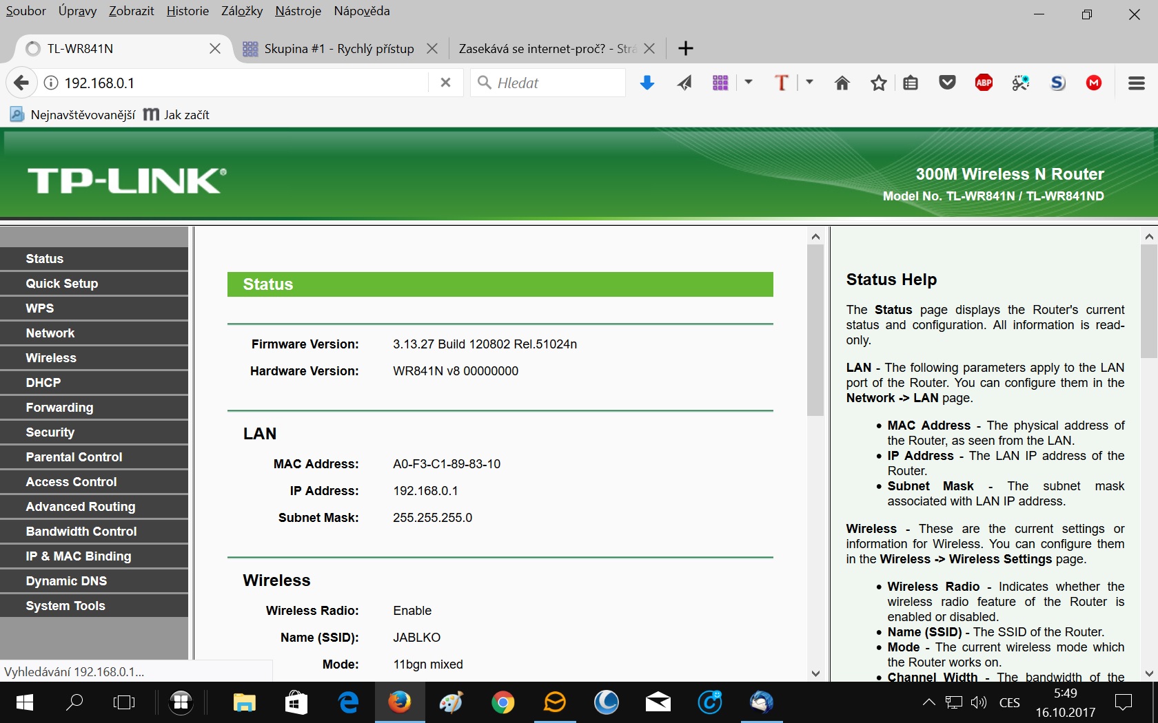Když zkusíš zadat do prohlížeče adresu 192.168.1.1, zobrazí se co?