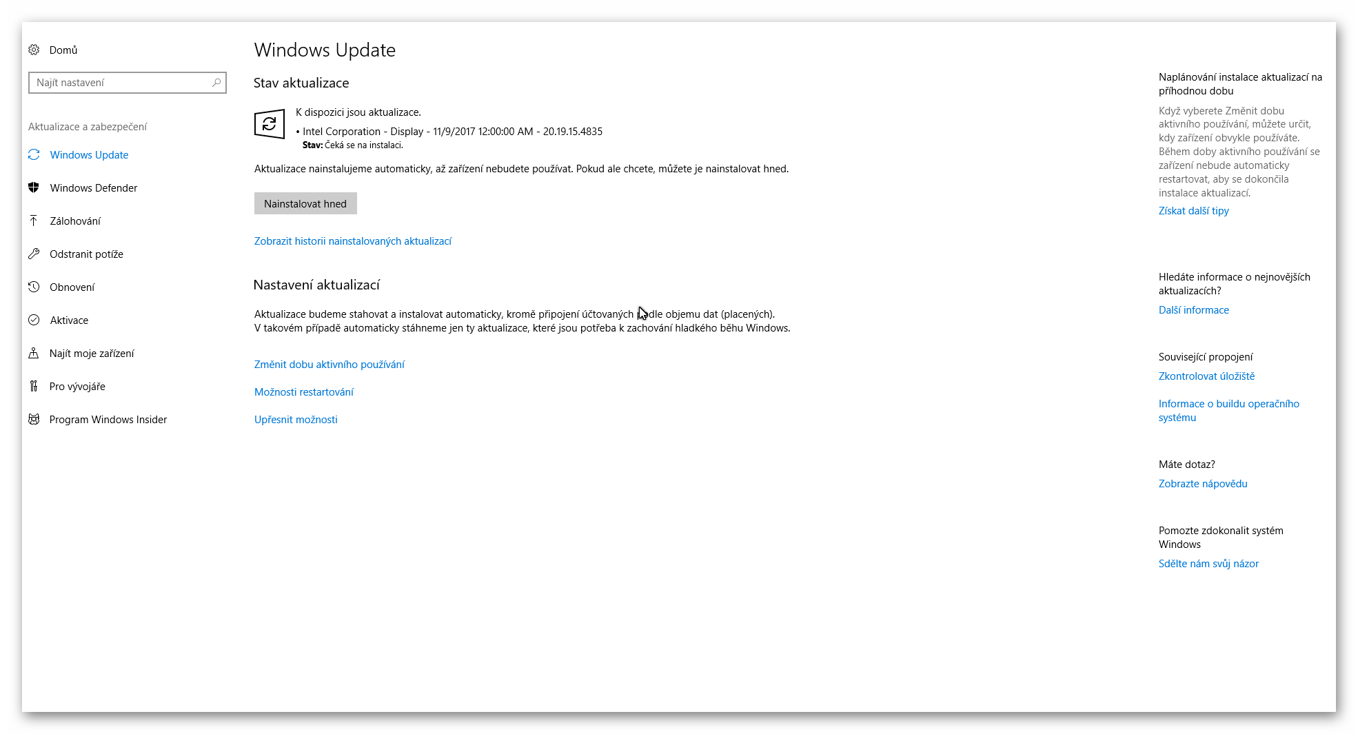 tohle je trochu choulostivější... pořád mi tam jedna aktualizace "vysí", viz. obrázek, jedná se o aktualizaci pro Intel grafiku, odklikávám to asi už dva dny, pokaždé to ukáže, že se to nainstalovalo, ale přitom se mi stále ukazuje a žádá instalaci...