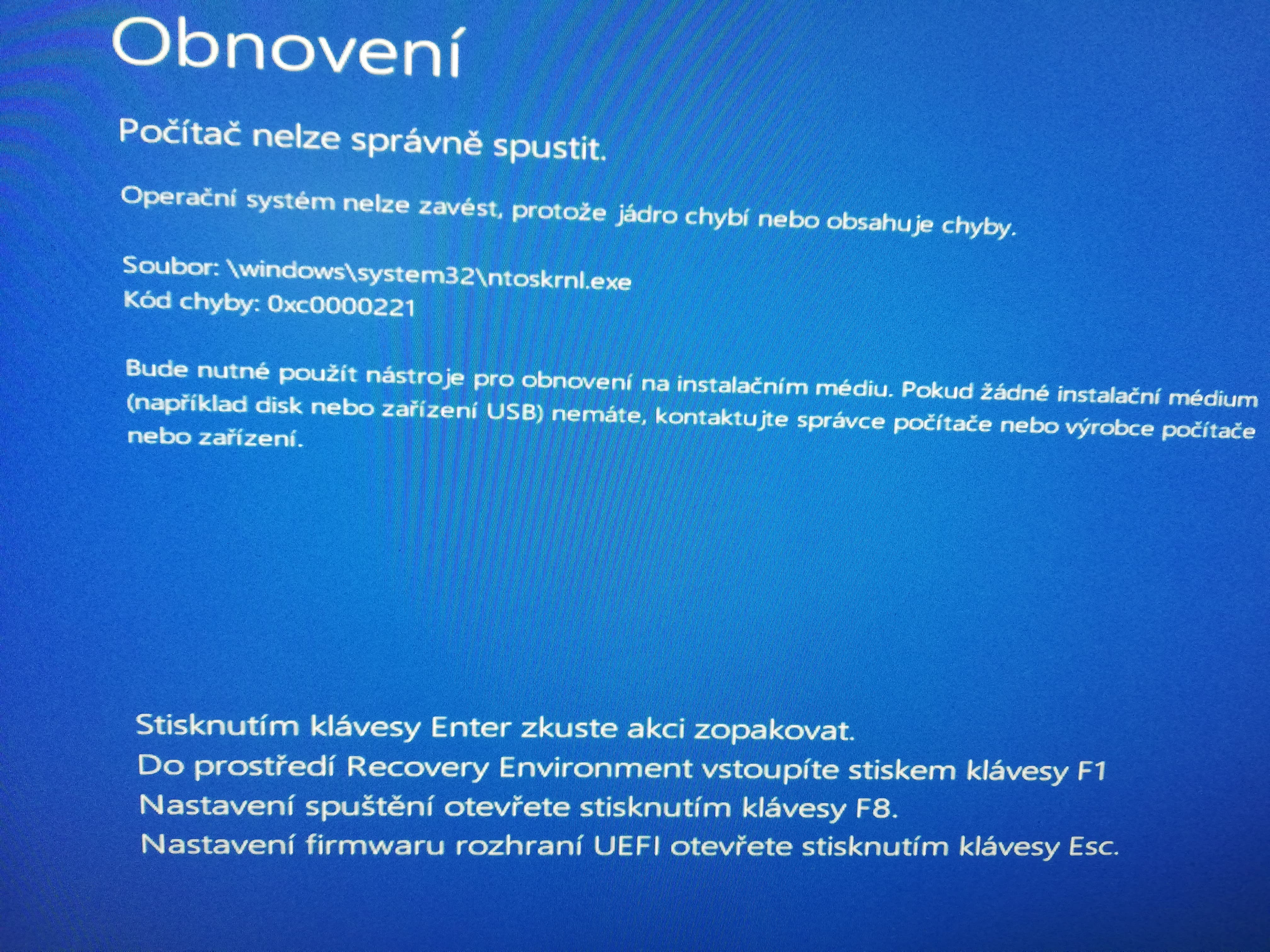 obracím se k vám s prosbou ohledně nečekané modré smrti která mě dnes potkala. Během hraní mi počítač nahodil error a následně se celý systém hodil do restartu, po kterém se už ovšem nenahodil zpět a vždy mi to vyhodilo pěknou tabulku kde jako vyníka uvádí soubor ntoskrnl.exe . Něco málo už jsem hledal na internetu a našel jsem jakýsi návod : http://cs.wondershare.com/fix-computer/ ... ssing.html.