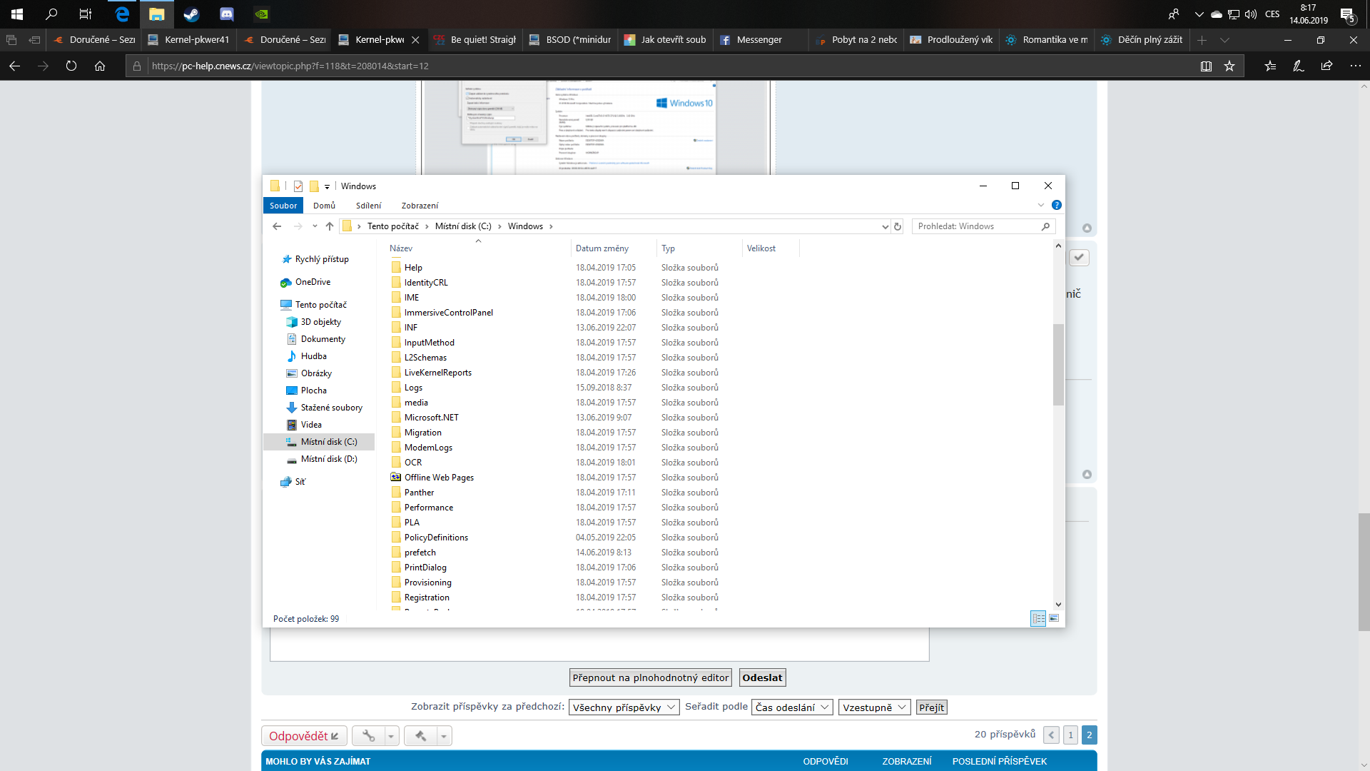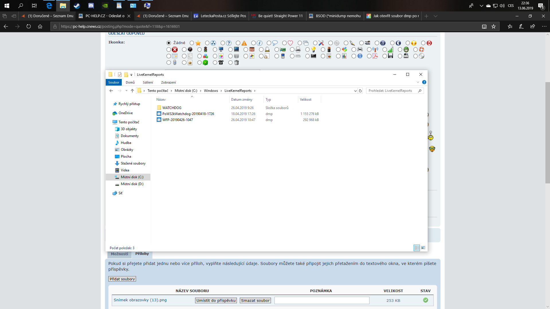 Když jsem hledal MINIDUMPY tak jsem našel složku WINDOWS i dokonce MINIDUMPY v disku :D