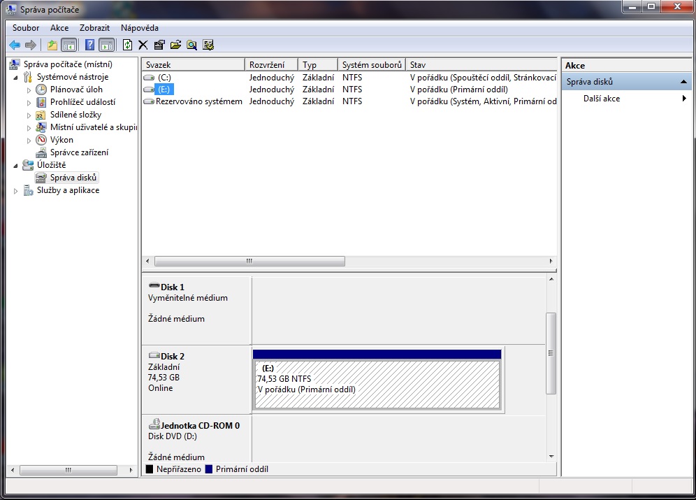 Tak to napíše - na tomto disku nejsou žádné oddíly k zobrazení.