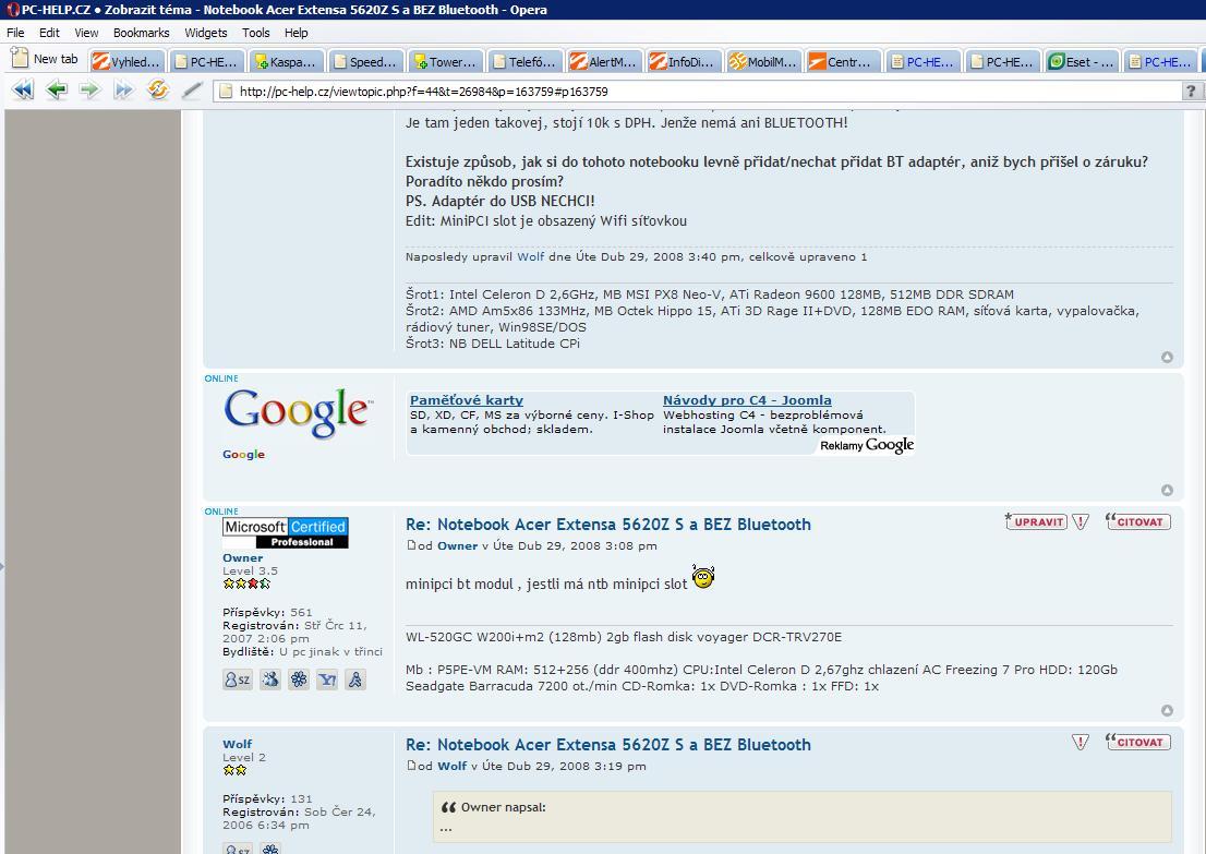 Re: Notebook Acer Extensa 5620Z S a BEZ Bluetooth Vyřešeno