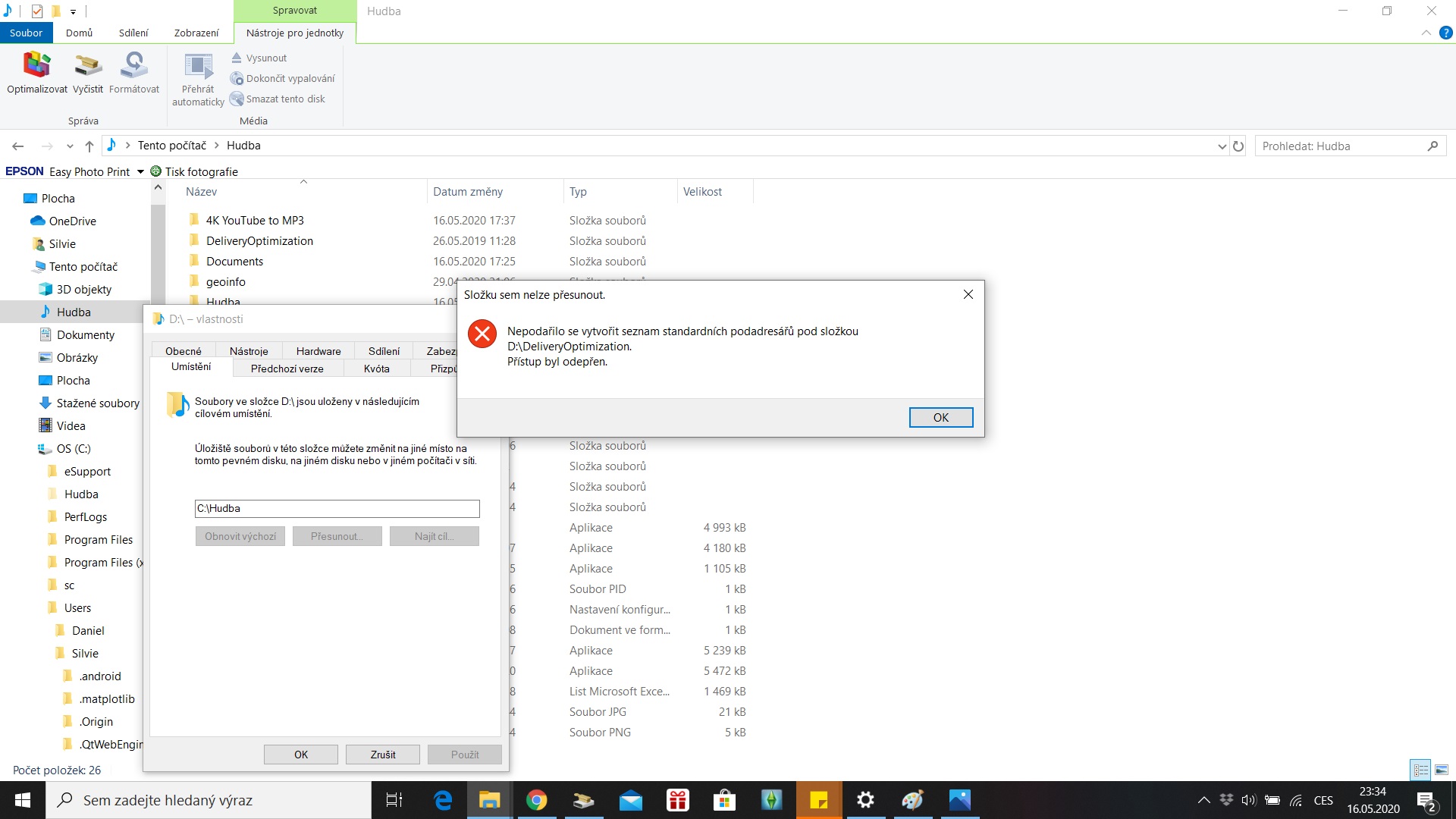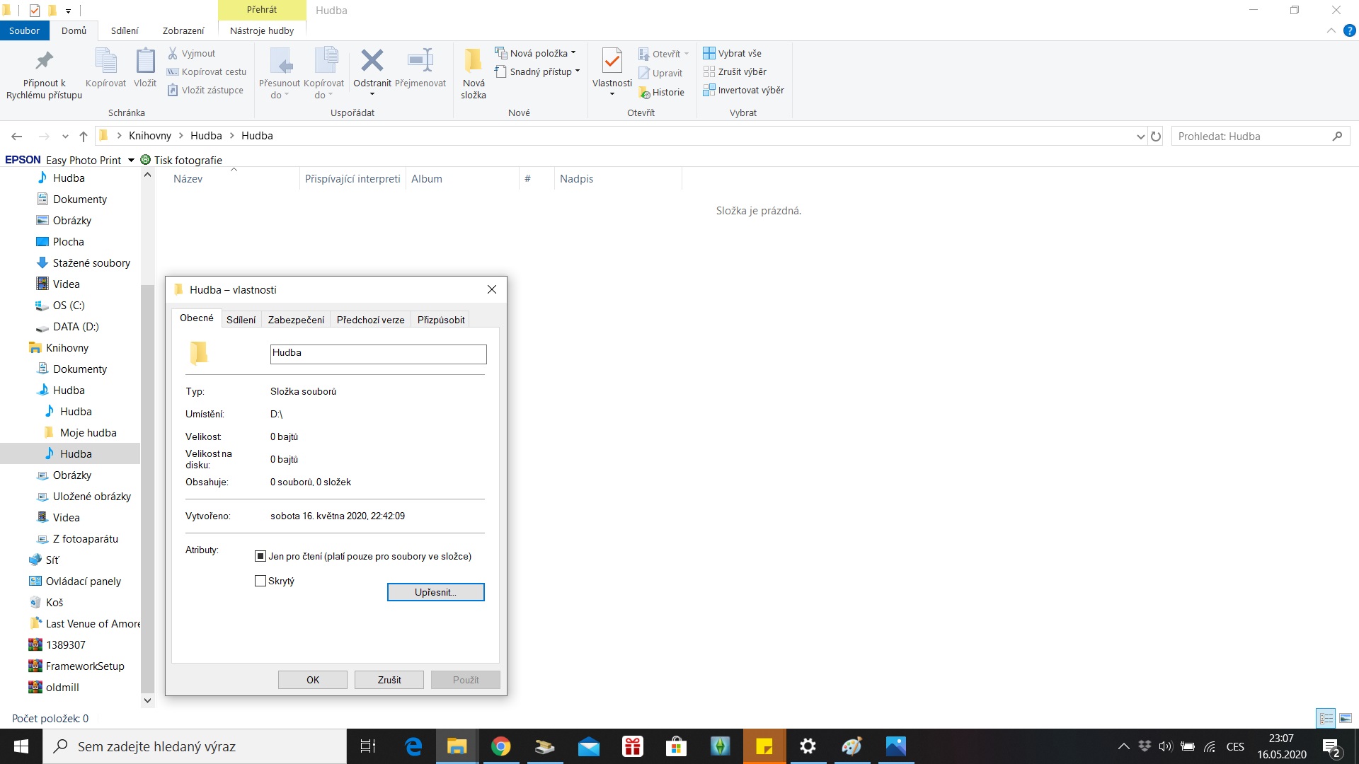 Problém je v tom, že mi nejde manipulovat jen se složkou Hudba, protože i když se o to snažím, stejně vždycky zároveň manipuluju s diskem D