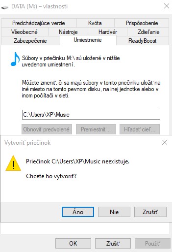 Ak si Zmením umiestnenie na disk mám to takto a zmizne mi z Hudba z C.Potom to vrátim späť , Vytvoriť zložku Áno ale na druhú otázku kliknem Nie.Čo skúsiť vytvoriť zložku Hudba na inom disku, ak nemáš , tak hoci aj na C ale tam s iným názvom a tam si dať premiestniť , ak do vytvorenej zložky na D to neberie.