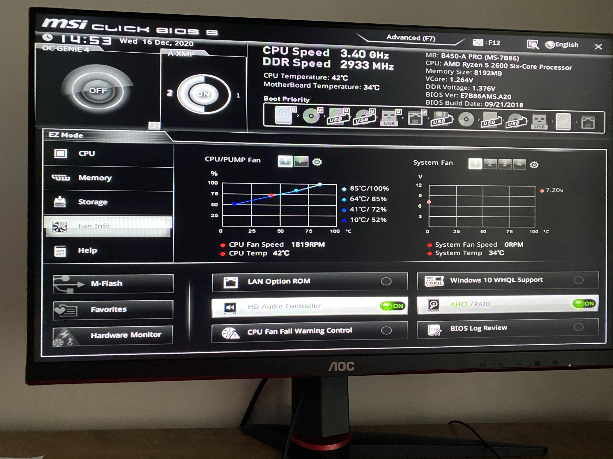 Tady mám BIOS, nejde mi screen skrz americkou klávesnici. Tak foceno na iPhone.
