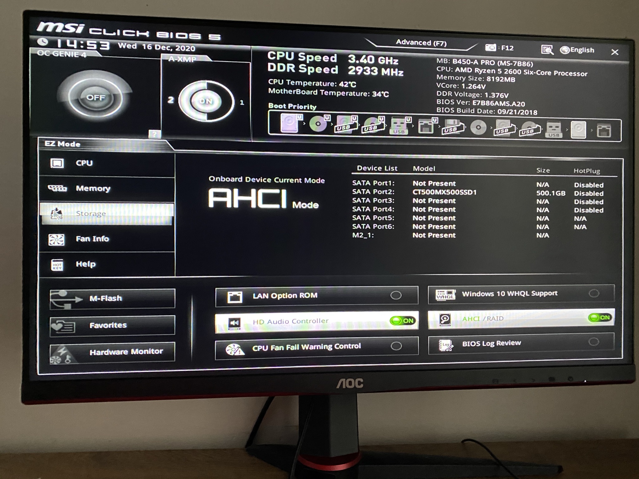 Tady mám BIOS, nejde mi screen skrz americkou klávesnici. Tak foceno na iPhone.