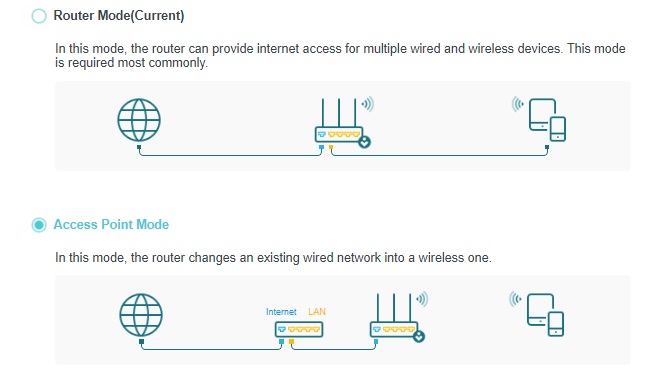 - poté, co zadáš do WAN adresu, nastavíš režim AP, router připojíš k WAN a mělo by to chodit.