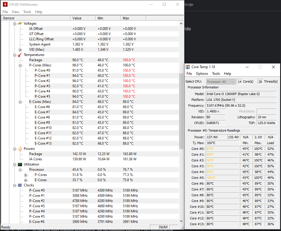 nedávno jsem si pořídil novou sestavu za cca 54k (viz. ndole), kterou mi tady někdo poradil. Podle mě vše jede docela v pohodě, ale zaznamenal jsem vysoké teploty při hraní her. U cyberpunk na high settings to vyskakuje až do 100°C. U ostatních méně náročných her jako Hunt Showdown až na 80-90°C. Nevyznám se v tom vůbec, ale podle googlu tyhle hodnoty jsou až moc vysoké. Mohli byste mi poradit jestli není něco špatně?