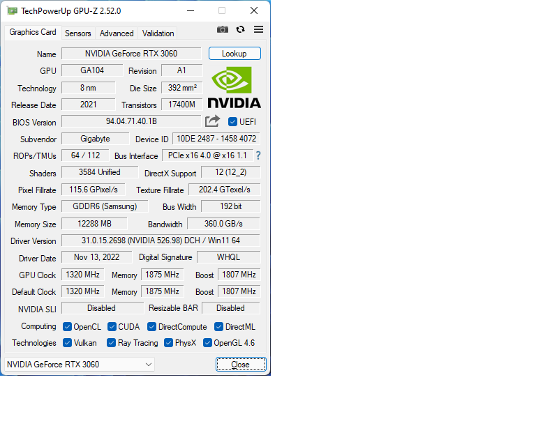 Gigabyte RTX3060 vs Gigabyte RTX3060