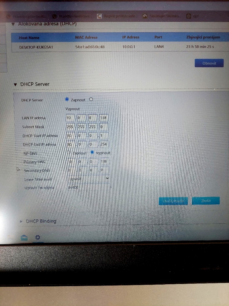 Zkusil jsem vypnout DHCP, adresu jsem dal 10.0.0.139, a vyhodilo mně to uplně z internetu...:-(, já bych i někoho zavolal, ale byly zde již technici ze dvou fy. a nevěděli si rady...bohužel nvm zda je to složitostí nastavení, nebo jen opravdu tohle neuměli...