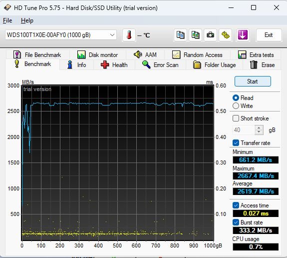 Zkusil bych i test rychlosti pres cely disk, nektera SSD umi po nejake dobe degradovat a rychlost zapisu v nekterych mistech klesne klidne na jednotky MB/s, treba jako tady jeden WD Black po 2 letech: