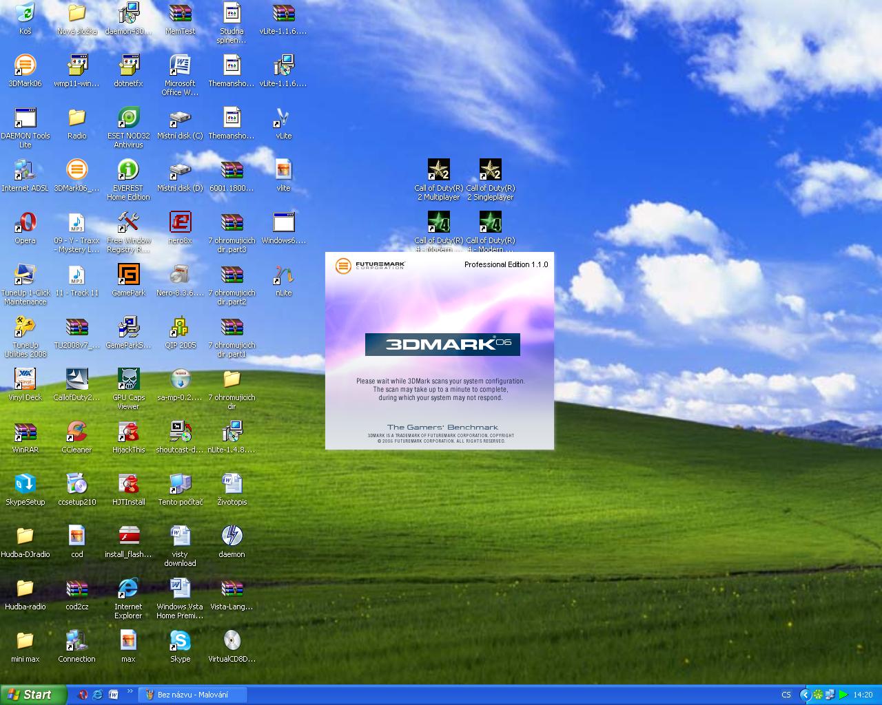 zdravím,mám takový problém s programem 3dmark 05 a 06,když ho spustim tak se mi objeví tabulka kterou jsem přiložil do screenu a pak se nic neděje,mrknu do správce uloh a píše to že ten program neodpovídá a když to ukončim přes správce uloh (jinak to nejde) tak to hodí chybu,nevíte někdo čím to může být?Diky