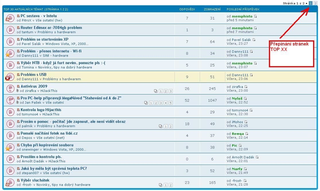 - úvodní strana fóra se bude načítat o něco rychleji, zároveň nebude TOP XX zabírat tolik drahoceného místa