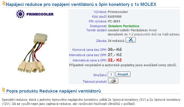 s touto redukcí můžeš připojit ventilátorů více...a kdyby na 12v byl hlučný tak ho můžeš píchnout na 5V.
