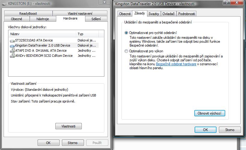 otevrou se Ti vlastnosti zarizeni - takze tady dej zalozku Zasady a kokni se jestli mas nastaveno "optimalizovat pro vykon" nebo "optimalizovat pro rychle odebrani" - to co Ty chces je mit nastavene "optimalizovat pro rychle odebrani" - takze to pripadne prenastav, jeste jednou a naposled pres bezpecne odebrani vyndej pametovku a melo by to jet uz v pohode :-)