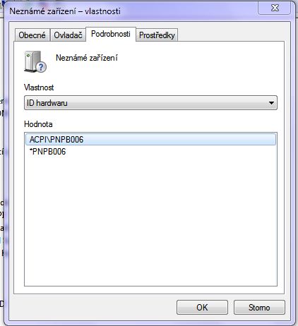 Ve správci zařízení jdi na tu třetí záložku - Podrobnosti, kde ve spodním okénku uvidíš označení prodejce (Vendor) a zařízení (Device). Vypadá to např takto: PCI\VEN_1191&DEV_8040& ... atd. Poznač si to. Pak jdi na stránky http://www.pcidatabase.com/" onclick="window.open(this.href);return false;, kde do pole Device Search zadáš to číslo zařízení (dle výše uvedeného příkladu tedy 8040) a klikneš na tlačítko Search. Pak se ti zobrazí stránka s výsledkem. V řádku s uvedeným zařízením (dle příkladu v prvním sloupci bude 0x8040) najdi v sloupci Vendor ID to tvoje (u mne tedy 0x1191) a v posledním sloupci bude odkaz na stránku prodejce. Po kliknutí na tento odkaz se zobrazí seznam všech zařízení daného prodejce. To svoje si najdeš opět v prvém sloupci. Tak máš identifikované neznámé zařízení a pak už pro něj můžeš hledat ovladač.