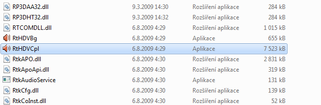 jinak na netu jsem cetl ze ten sprvace zvuku Realtek je RtHDVCpl.exe, v PC jsem ho nasel,ale kdyz na nej kliknu nic se nestane,a kdyz jsem mel ten puvodni ovladac tak to slo a jak ho aktualizuji tak zas nejde