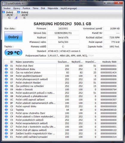 HD Tune jsem dělala s 1TB diskem (vše v pořádku), udělám ještě i 500GB disk.