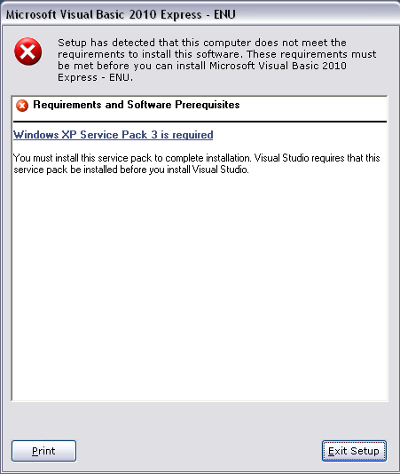Co tam je napsáno? Vyžaduje Service pack 3 na XP, takže nainstalovat a zkusit znovu!