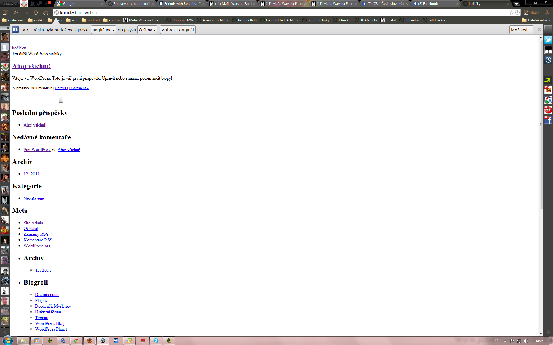Zdravím. Nahrál jsem si wordpress 3.3 a ať dám jakoukoliv šablonu, tak nevidím žádné obrázky, chybu to žádnou nehlásí, vidím jen text. Děkuju za každou pomoc.