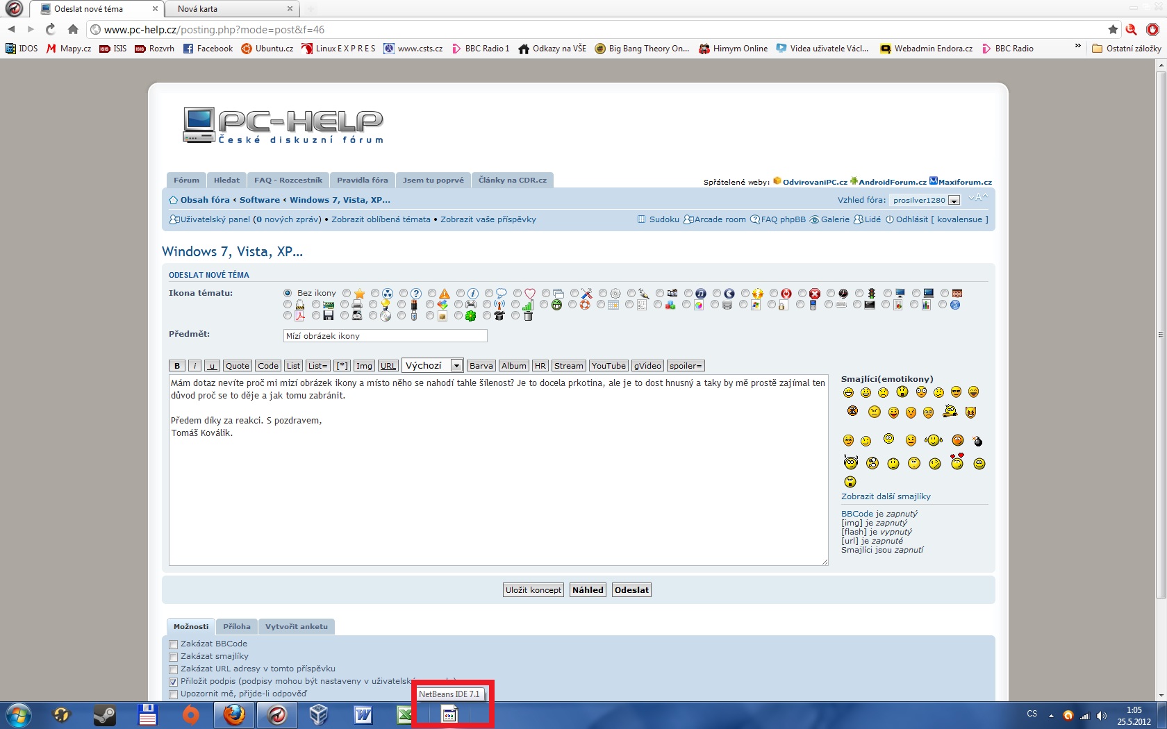Opravdu se zde nenajde nikdo kdo by mi to dokázal objasnit a vyřešit jiným způsobem než stahováním ikony? Vždyť to fungovalo, tak proč by to nemělo fungovat i nadále?