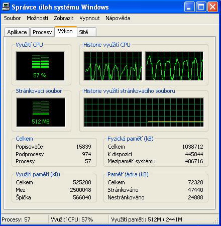 Stránkovací soubor velikej, všechno O.K. Jen ten Outlook se vůbec nedá použít. Když je zrovna "ve vlně", reaguje s nesnesitelným zpožděním několika sekund na myš i klávesy.