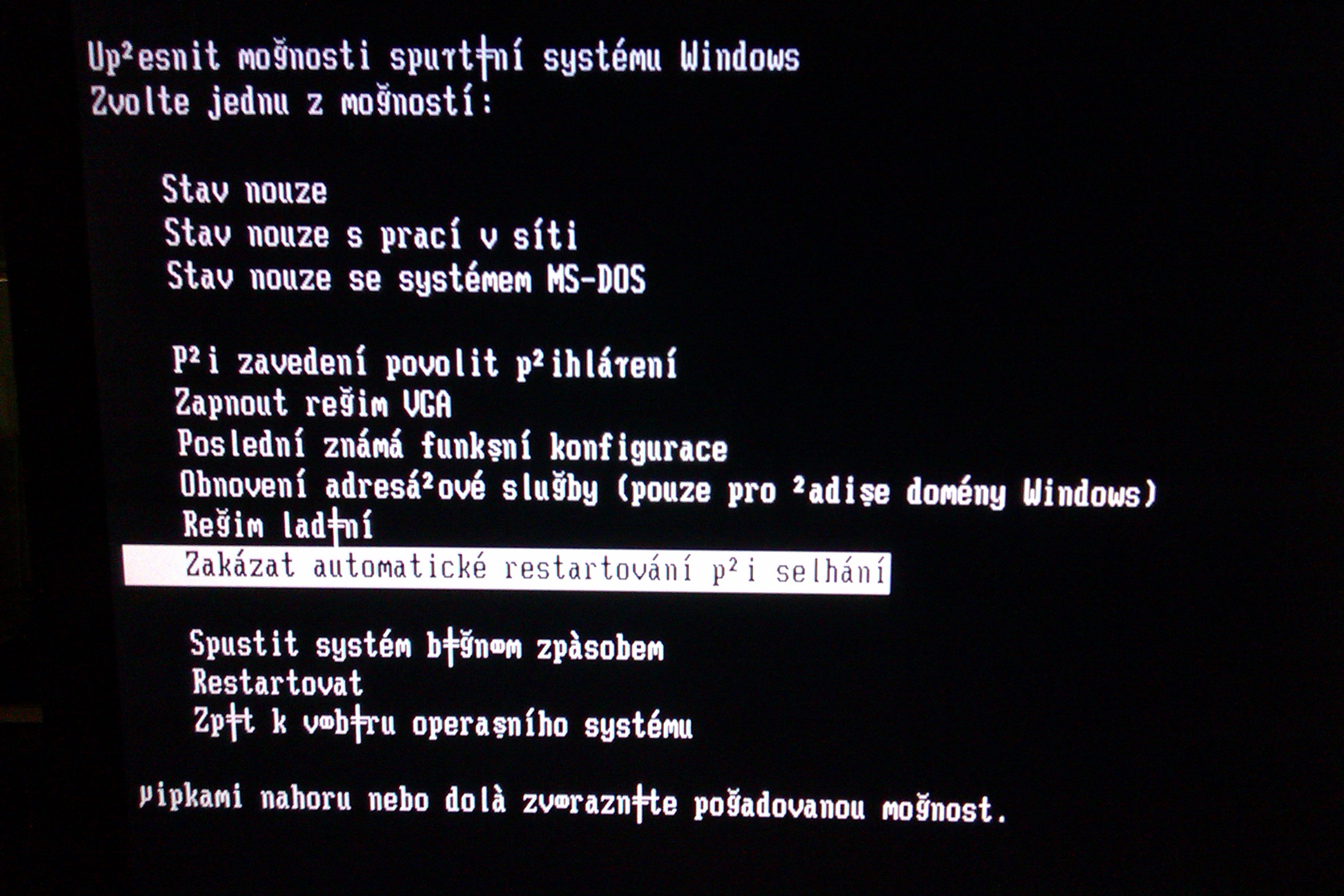 Po zapnutí PC mačkej opakovaně F8. A z nabídky zvol zakázat automatické restartovaní při selhání.