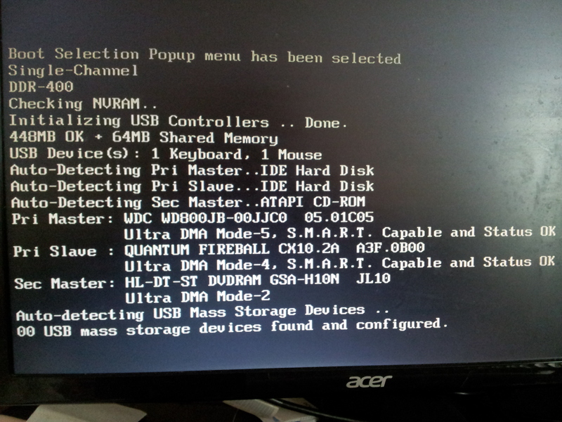 Nenapíše to ani nic jako o BOOT DEVICE MISSING či něco podobného?