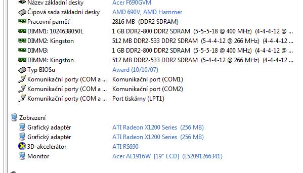 To je 256mb. Nejspíš tam máš 512ku a 256tku, to by pak řešilo ten problém, proč ti to hlásí kolem 776Mb. Jinak 32bitový systém zvládne 3GB RAM