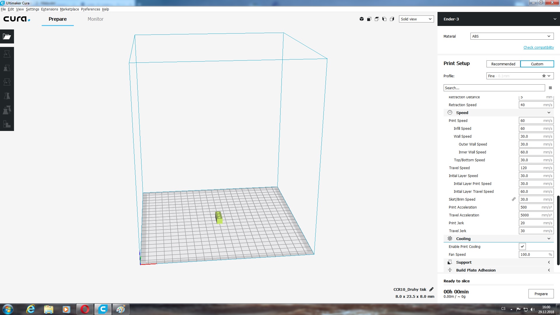 Rychlost tisku urcuje hlavne dobu, za jak dlouho to bude a spolecne s rychlosti ventilatoru