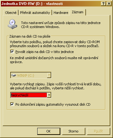 Musíš odškrtnout "Povolit zápis na disk CD........."