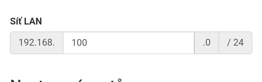 No, tak te´d už je to jasné. prostě si můžeš nastavit jen tu 100. Tedy si můžeš vybrat, zda chceš mít síť 192.168.100.0/24, nebo třeba 192.168.50.0/24. Ale jak správně píšeš, nic jiného.