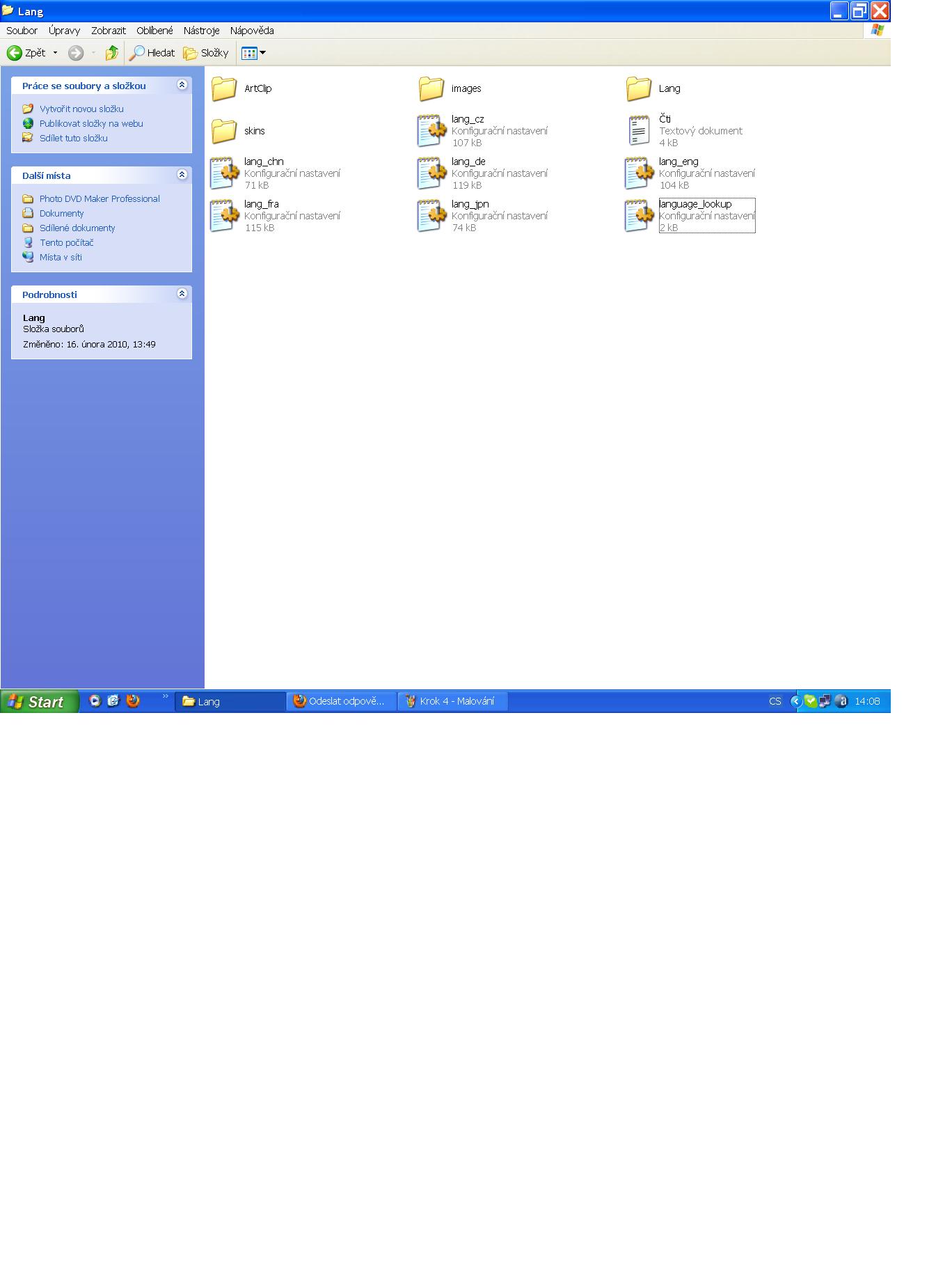 Krok 4 - tak jsem zkusila vyjmout ze složky Lang ten textový soubor a vložit ho tam kde byly ostatní jazyky, ale to pak program nešel vůbec otevřít