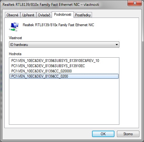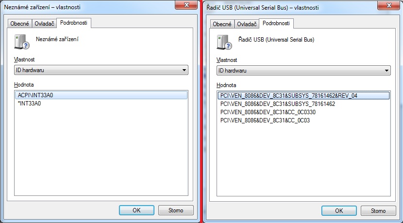 Příkládám screen s ID hardwaru jak neznámého zařízení, tak i řadičů USB.