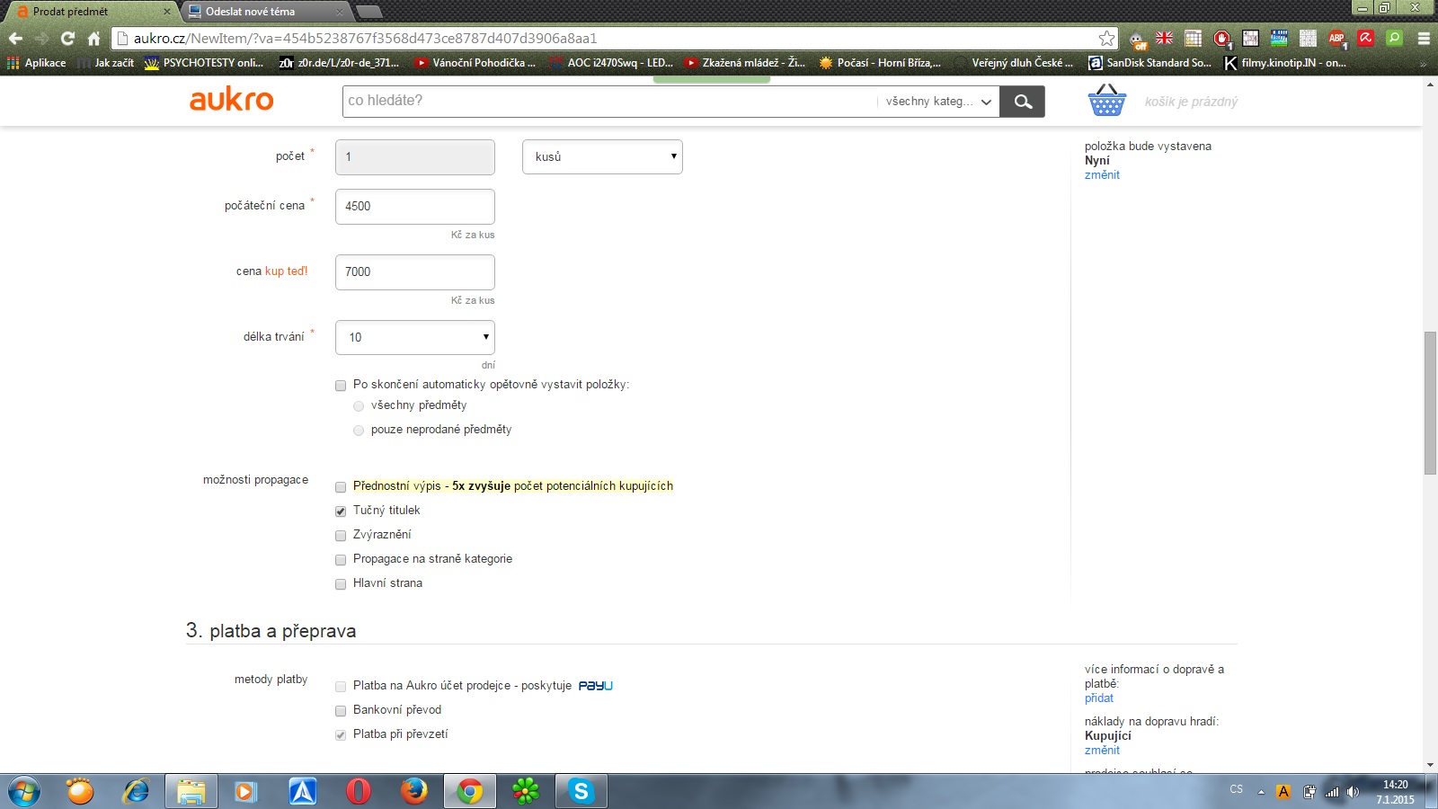 už se tu snažím přes hodinu probojovat se přes "vystavení předmětu" na Aukru.cz... Dávám sem screeny, může mi někdo říct, co dělám špatně a proč to kruci-fix nefunguje?