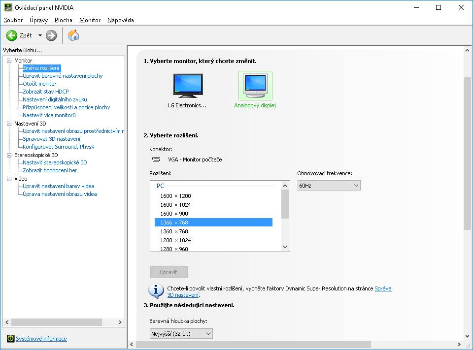 Coz je nejspis duvod proc nejde nastavit spravne rozliseni, je treba ten analogovy displej zmenit bud primo na dany monitor, nebo na zarizeni ktere dane rozliseni podporuje.