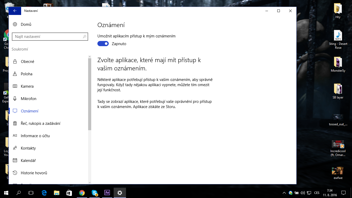 Dostala jsem se do nastavené soukromí. V soukromí se toho moc tedy nezměnilo. Až na to že si můžete vypnout a nebo zapnout oznámení. Což již v předešlé Windows 10 vůbec nešlo. Opět to samé přidány ikony k záložkám.