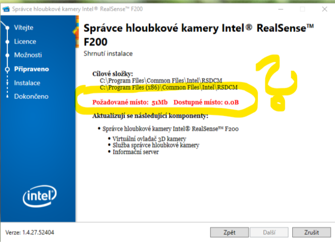 Re: Instalace driveru Intel RealSense - není místo-chyba win?! Vyřešeno