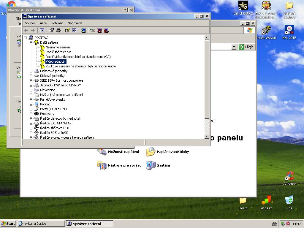 Chyba je v tom, ze vsechny ovladace se zlutym vykricnikem zkratka ve Windows nejsou, protoze pocitac je urcite novejsi nez Windows XP z roku 2001.