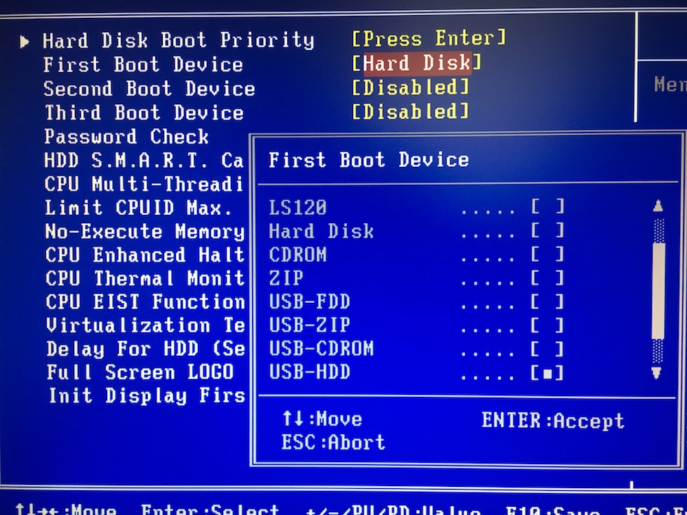 2) Většina USB se dnes v Biosu neukazuje jako USB-HDD ale jako klasický HDD. Při startu mačkej boot menu (F8/F10/F12), každá deska to má jinak a tam zvol boot ze svého USB. Buď bude v položce HDD, nebo zkusit možnost USB-HDD/FDD